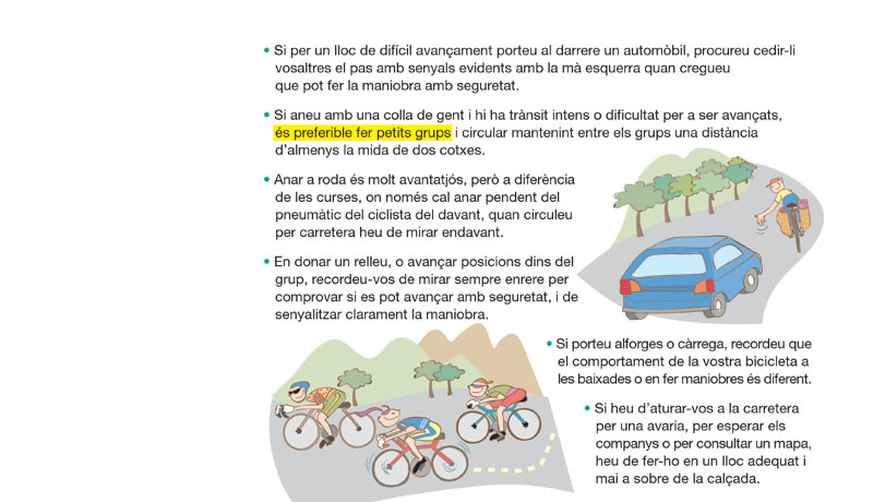 Els ciclistes poden circular en grup i sols sels pot avançar a tots de cop